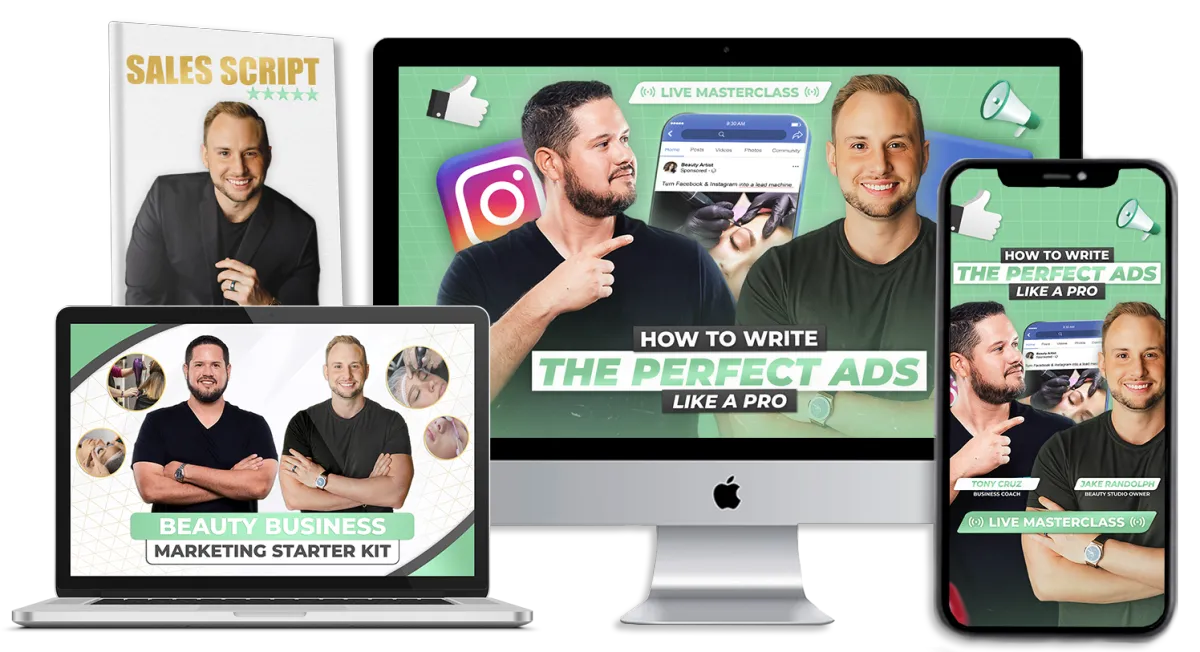 We are Jake Randolph and Tony Cruz, and we have assisted hundreds of beauty businesses in launching their marketing strategies and scaling up. As beauty studio owners and owners of the 6 Figure Esthetician Facebook group, we've handled millions in advertising budgets and coached top industry professionals.